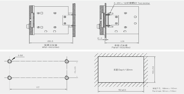 自動張力外形尺寸: SC-3H型自動張力控制儀可以落地式、掛壁式和面板式安裝。